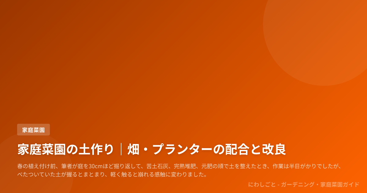 土作りは手間の多さで考えるより、畑は深く整える、プランターは配合を絞ると分けて考えると、遠回りせず立て直しまで見通せます。