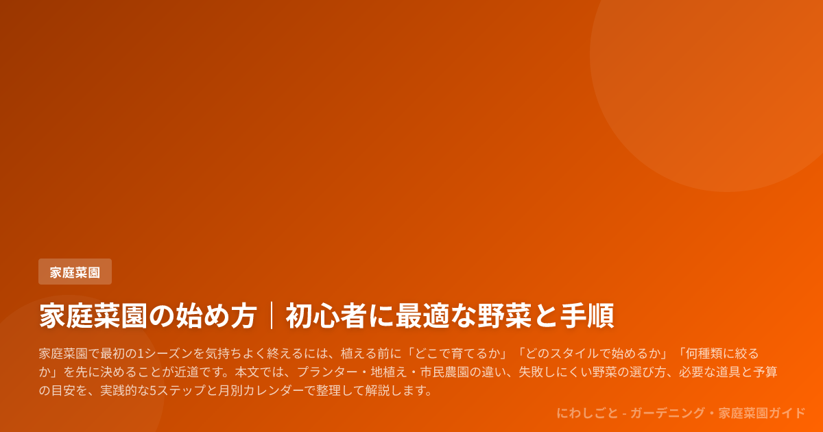 家庭菜園で最初の1シーズンを気持ちよく終えるには、植える前に「どこで育てるか」「どのスタイルで始めるか」「何種類に絞るか」を先に決めることが近道です。